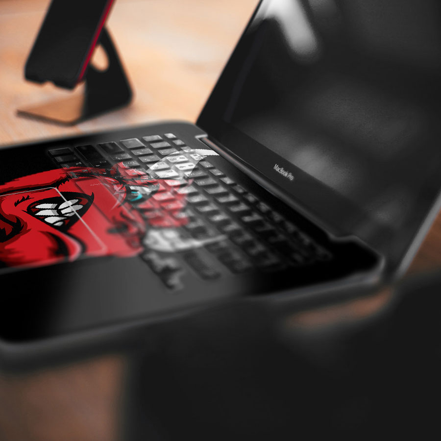 اسکین یکپارچه استراحتگاه و کیبورد طرح Angry Red Bull Head