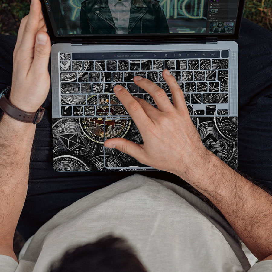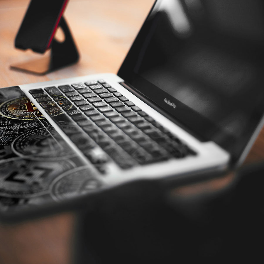 اسکین یکپارچه استراحتگاه و کیبورد طرح Bitcoin Bounces