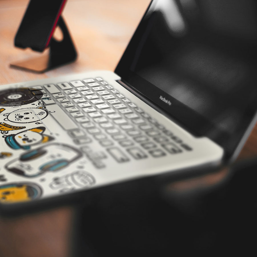 اسکین یکپارچه استراحتگاه و کیبورد طرح Cat Music Pattern