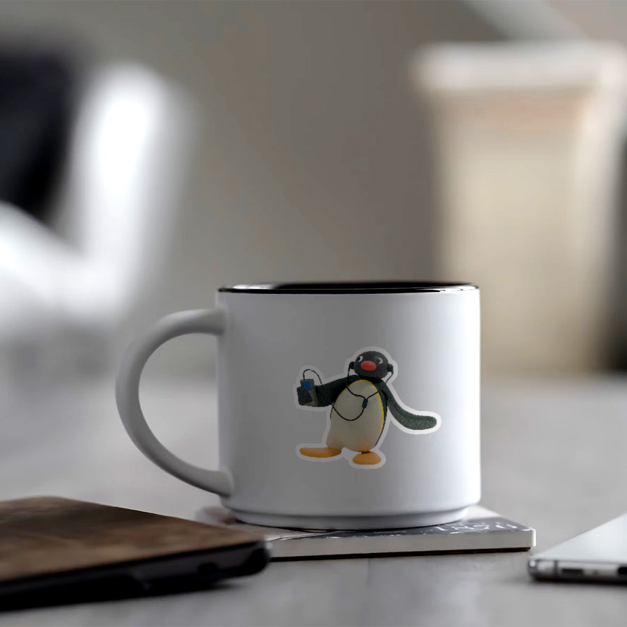 استیکر طرح Pingu Listening To Music
